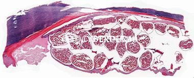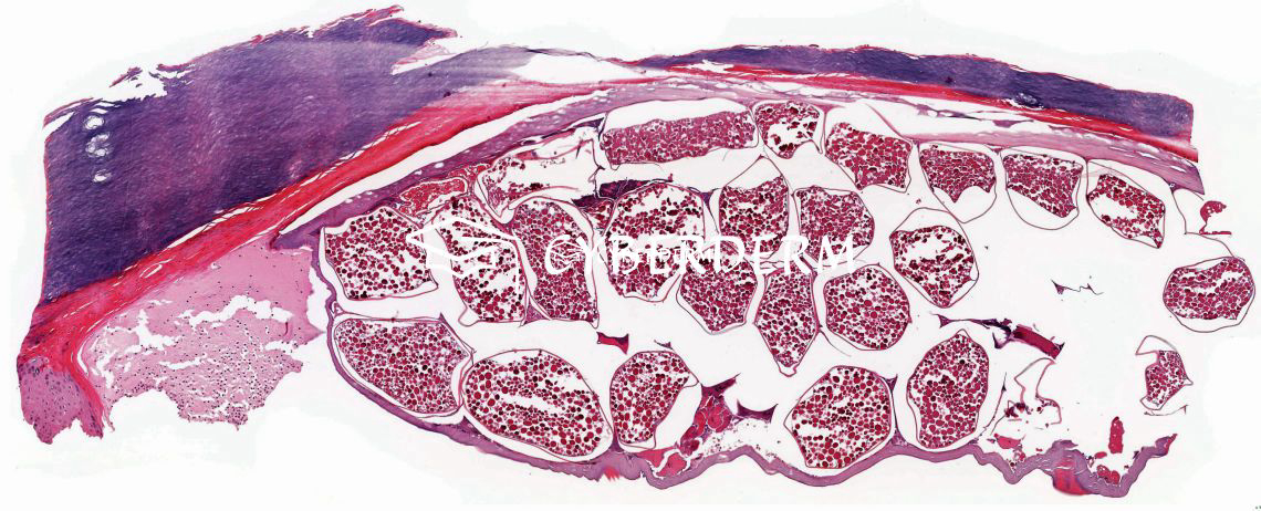 Nicht erforderlich. Vorhandensein des Parasiten, von Eiern oder Chitinfragmenten des Flohweibchens in der Dermis, das Hunderte von Eiern in seinem Körper trägt. Begleitendes polymorphes Rundzelleninfiltrat.