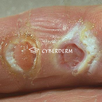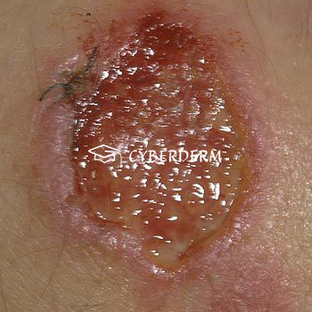 May develop crusts or necrosis.