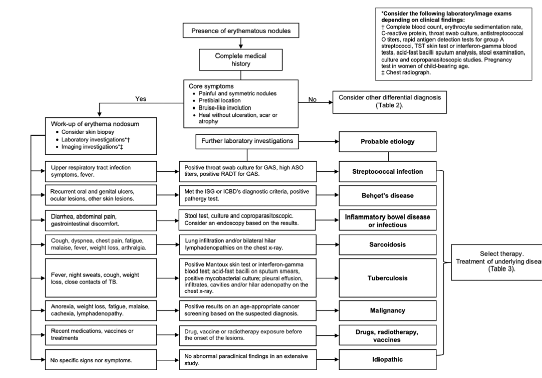 Algorithm for clinical and laboratory approach to check diagnosis of erythema nodosum